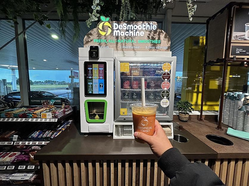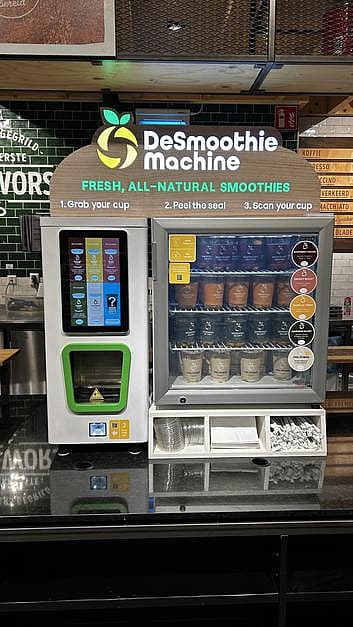 De SmoothieMachine serveert verse, gezonde dranken in seconden: slim, hygiënisch en volledig automatisch, zonder personeel of verspilling.