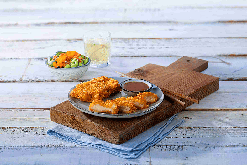 Krokant, licht gekruid. Gemaakt van malse kippendij. Perfect als garnituur voor een Poké bowl, salade of verwerkt in een Katsu Sando.